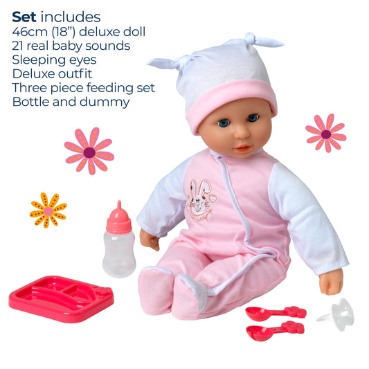 Dolls World Baby Babble 38cm Soft Bodied Doll With 16 Sounds - For ages 18 months+