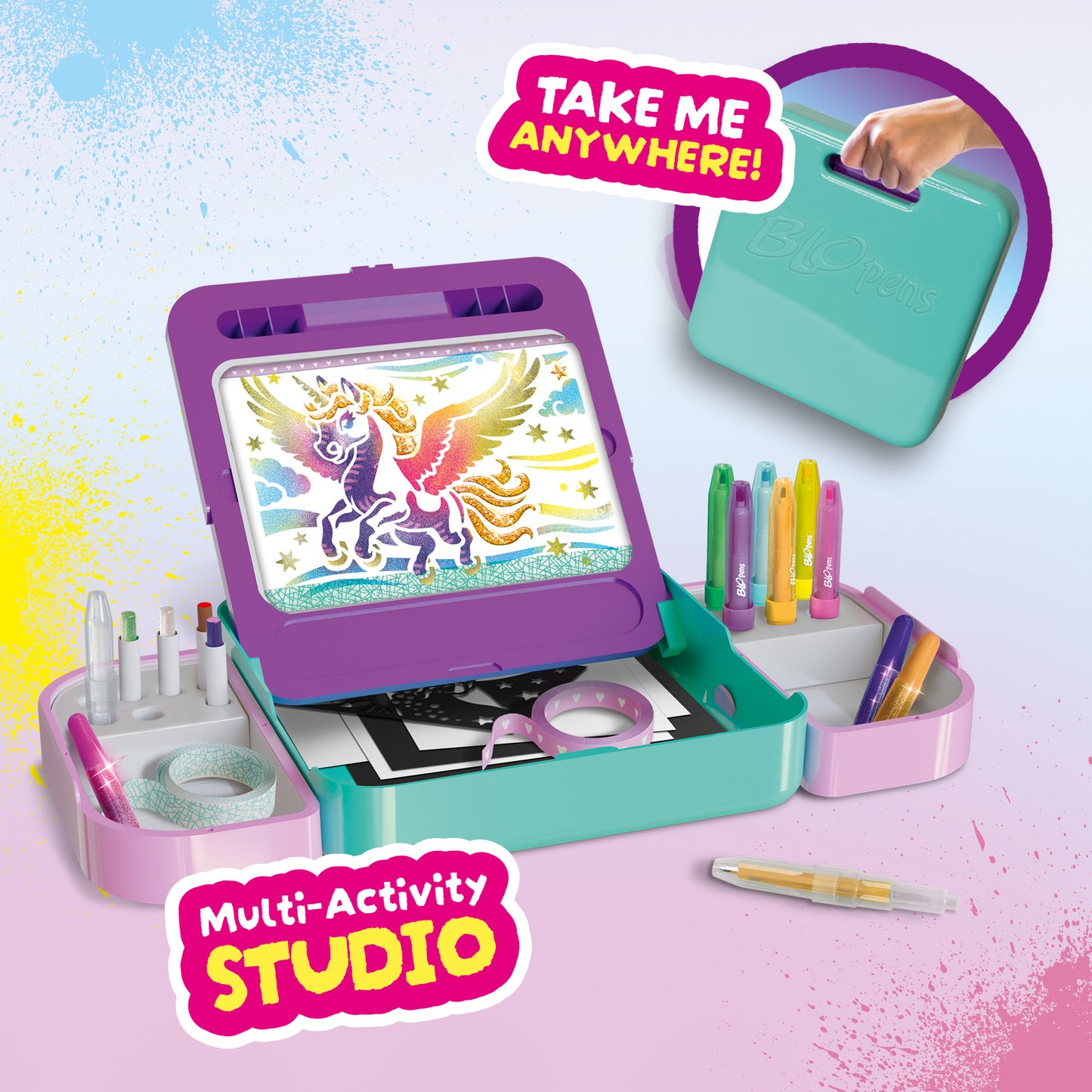 - NEATLY ALL STORES AWAY: The BLOPENS Fantasy Creative Studio folds away into a handy carry case with storage for all your art supplies!