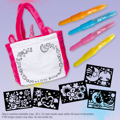 - PERSONALISE YOUR OWN UNICORN BAG - This isn't just any bag - it's YOUR bag! Use the 5 unicorn-themed stencils and 4 BLOPENS to colour, design, and make it uniquely yours. Add details with the pens to bring your magical unicorn world to life.