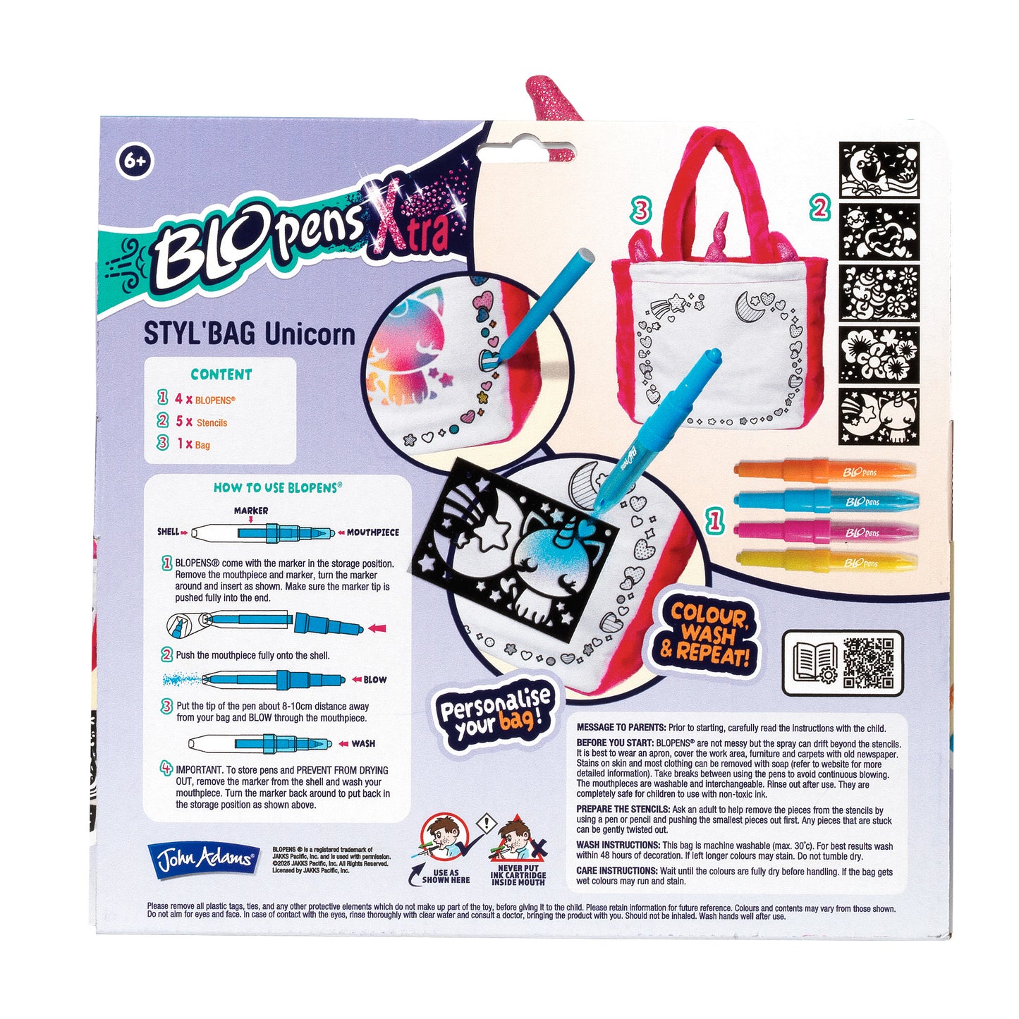 - AIRBRUSH MAGIC FOR KIDS - Create brilliant airbrush effects on your unicorn bag by blowing through the BLOPENS! Kids 6+ will love making professional-looking designs that look like they came from an art studio. Perfect for budding artists who want to try something completely different.