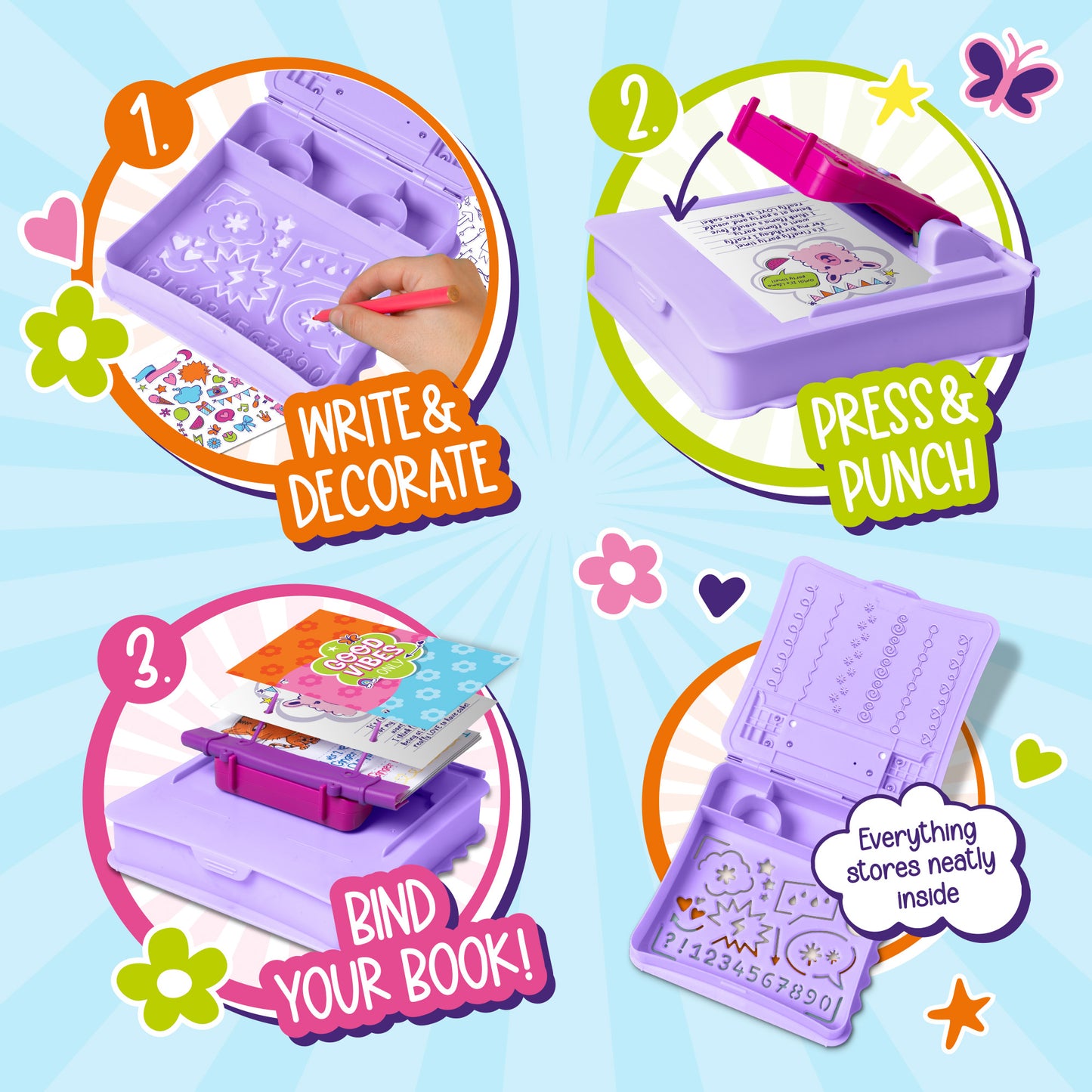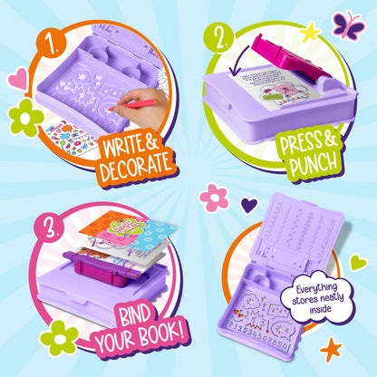 - Press. Punch. Bind. – Easy-to-use tools let kids punch holes, insert pages, and bind spines - all by themselves!