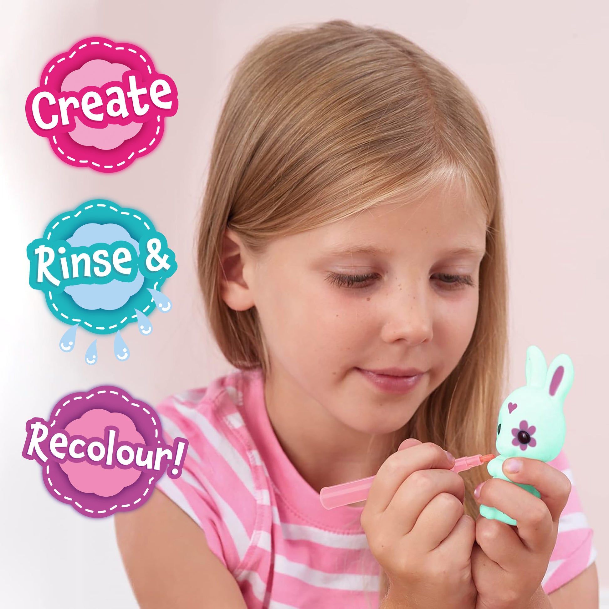 • CREATE, RINSE & RECOLOUR: Colour the bunnies with the pens to create unique designs, then rinse to start again!