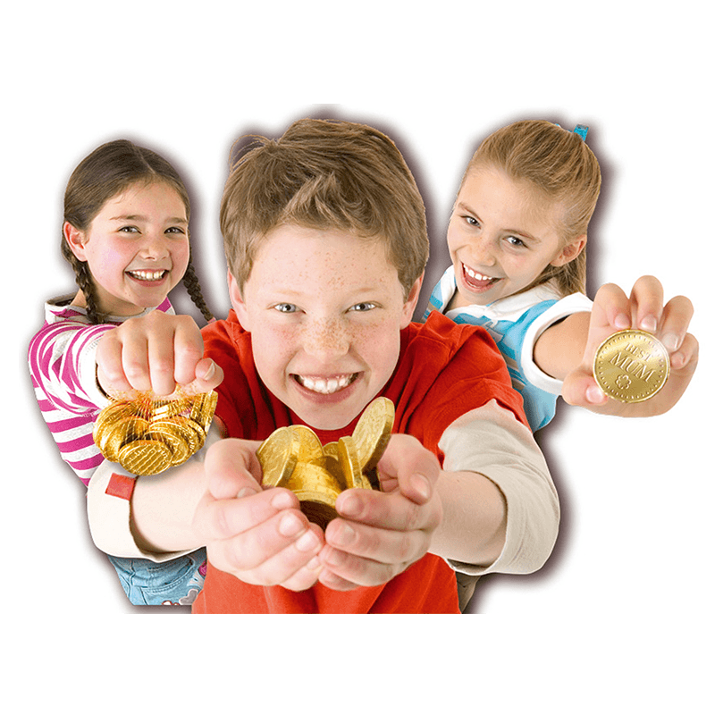 A set of 4 x sheets of golden foil, to make approx 12 golden coins.