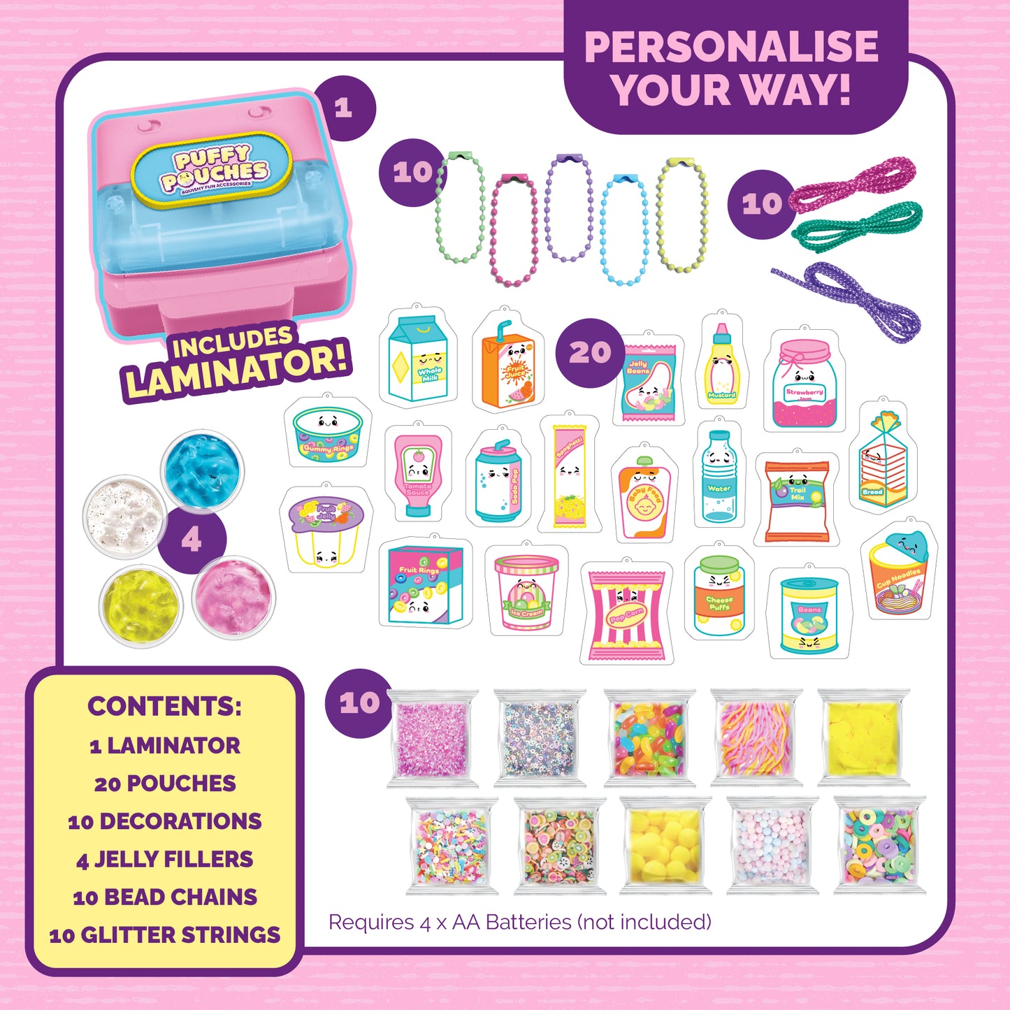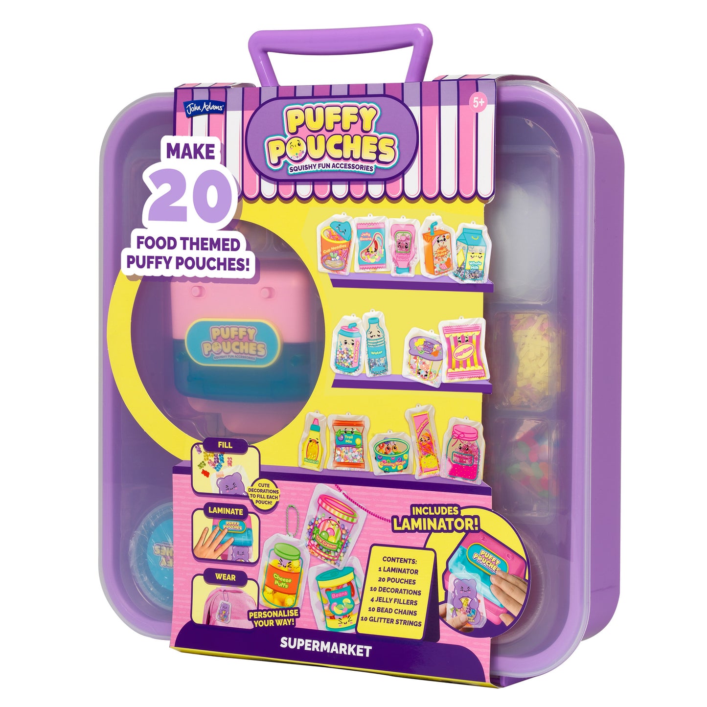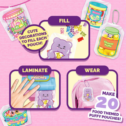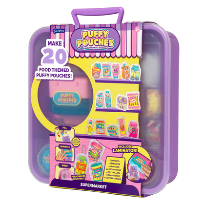 - Make Fun Squishy Accessories: Get creative with the Puffy Pouches Deluxe Set and design your own sensory, foodie-themed supermarket accessories to wear, share and squish!