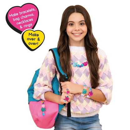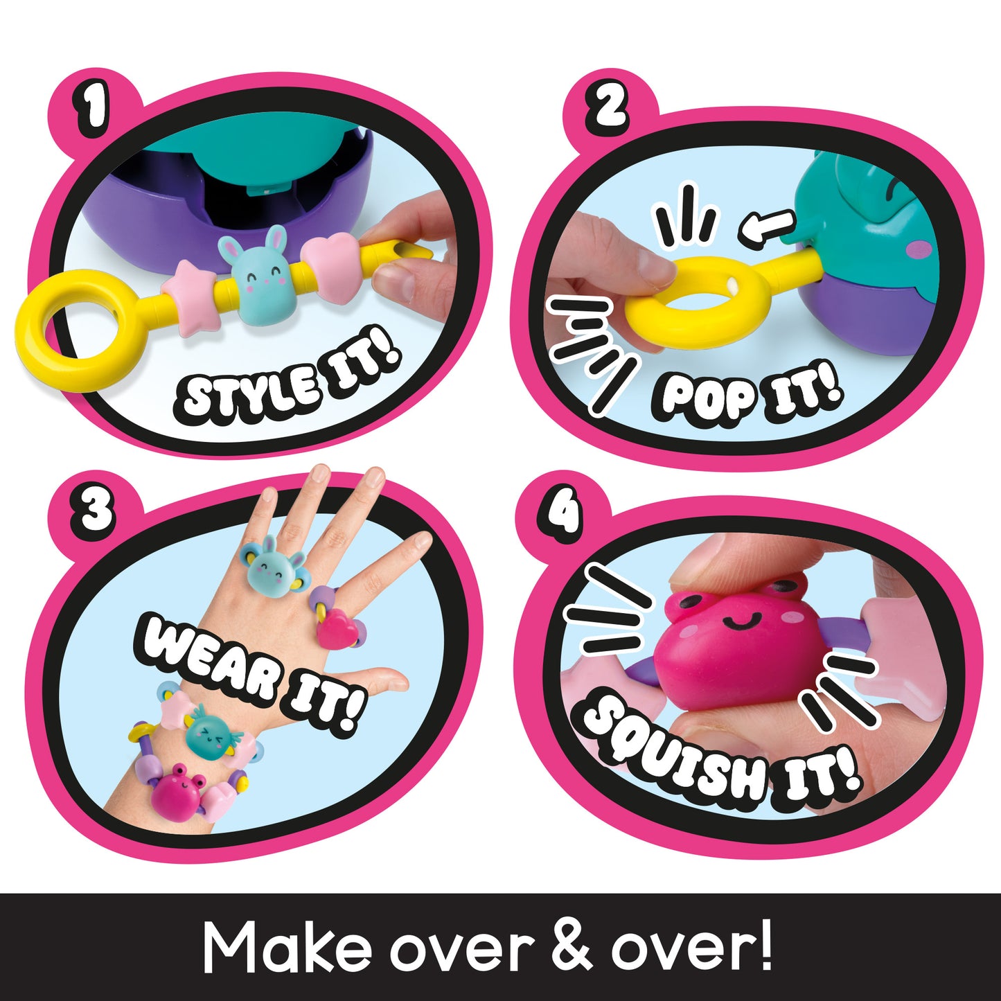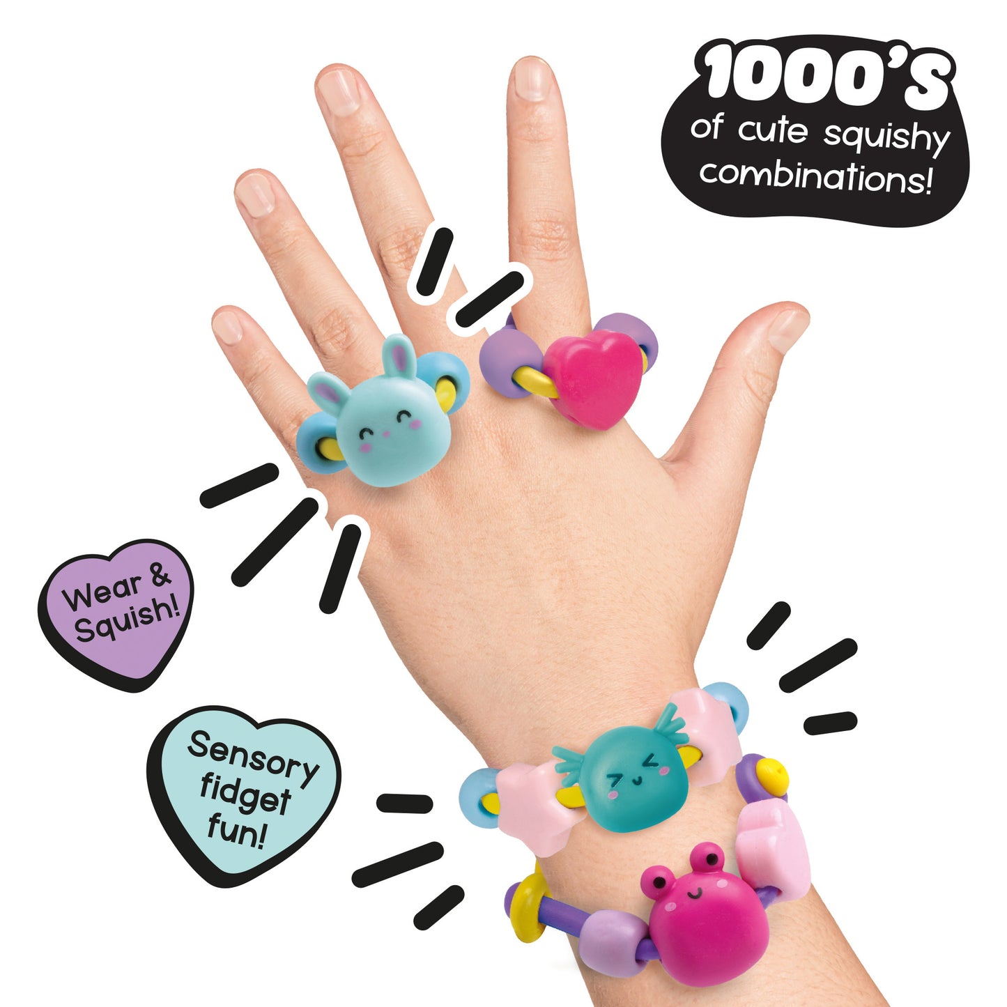 - CRAFT SQUISHY JEWELLERY: Transform colourful squishy beads and noodles into bracelets, bag charms, fidget rings and more! Discover 3 cute squishy characters, which you can add to your accessories.