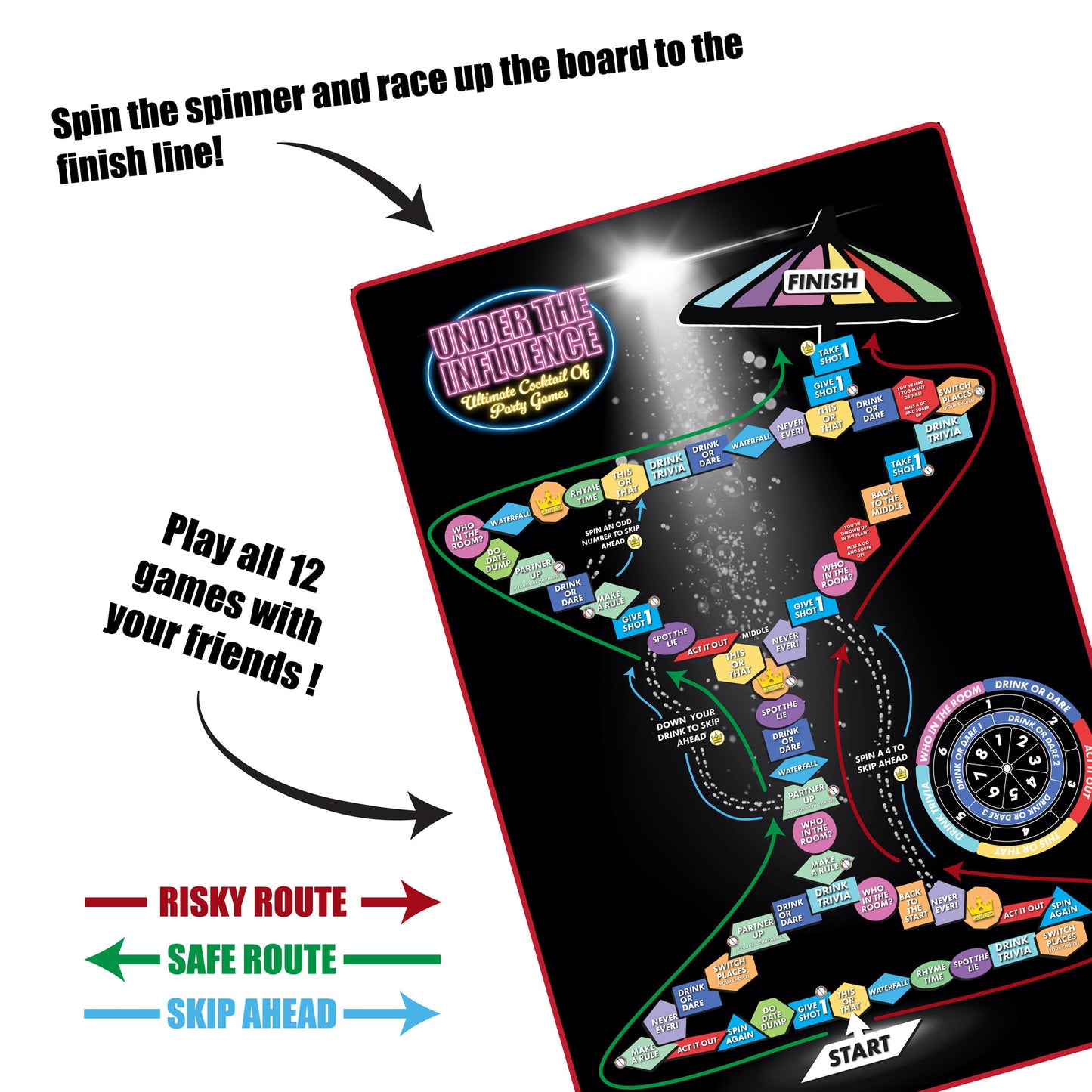 The aim ofÊUnderÊTheÊInfluenceÊis to work your way aroundÊtheÊboard, choosing your own route landing on up to 12 different classic drinking and party games, from ÔNever Ever' to ÔThis or That',ÊtheÊgroup are able to vote, laugh and dishÊtheÊdirt on other players inÊtheÊroom!